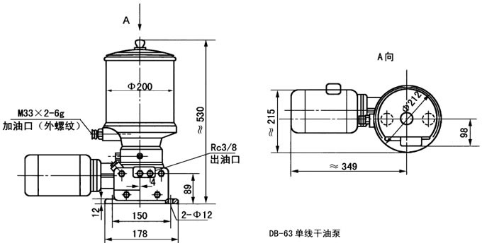 DB-63 型單線干油泵適用于潤滑頻率較低、公稱壓力為10MPa、潤滑點在80 點以下的單線小型干油集中潤滑系統(tǒng)中,通過片式給油器向各潤滑點供送潤滑脂。
